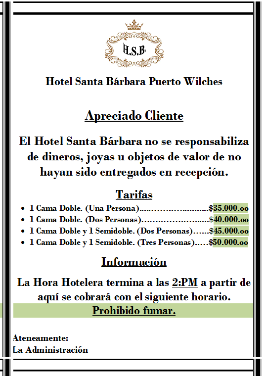 En Hotel Santa Bárbara Puerto Wilches, contamos con un equipo humano dispuesto y cualificado, para ofrecerle un servicio adecuado y oportuno. Con nosotros encontrará las soluciones más acertadas a sus necesidades, y la mejor oferta en precios.